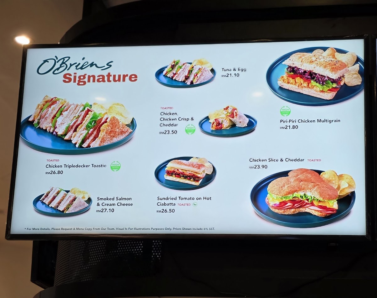 O'Briens Irish Sandwich Cafe @ Sky Avenue, Genting Highlands Menu